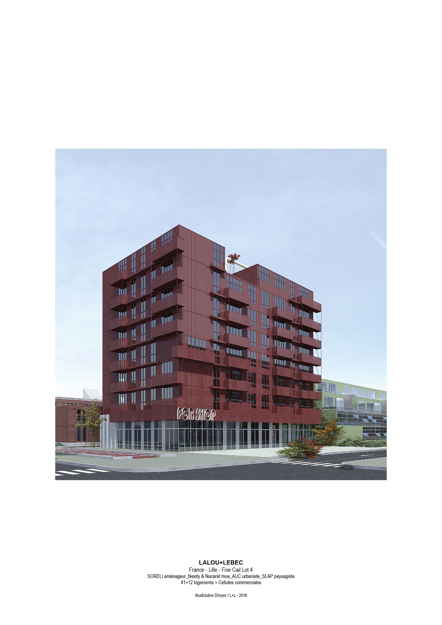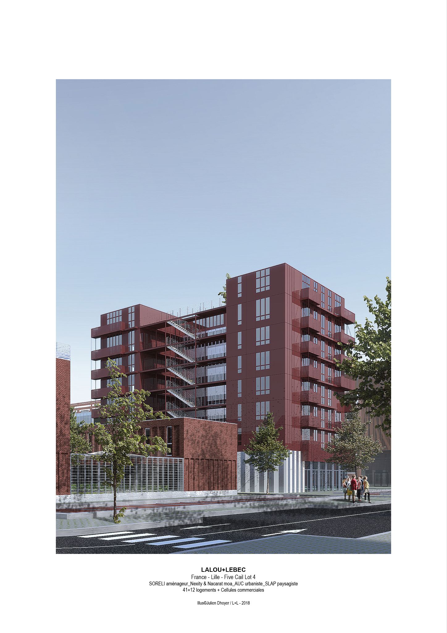 Fruit d’une collaboration engagée depuis 2014 avec l’agence Lalou+Lebec, mandataire de l’opération, cette réalisation s’implante sur l’ancienne friche Fives Cail Babcock, en vis-à -vis de la Bourse du travail, boulevard de l’Usine.