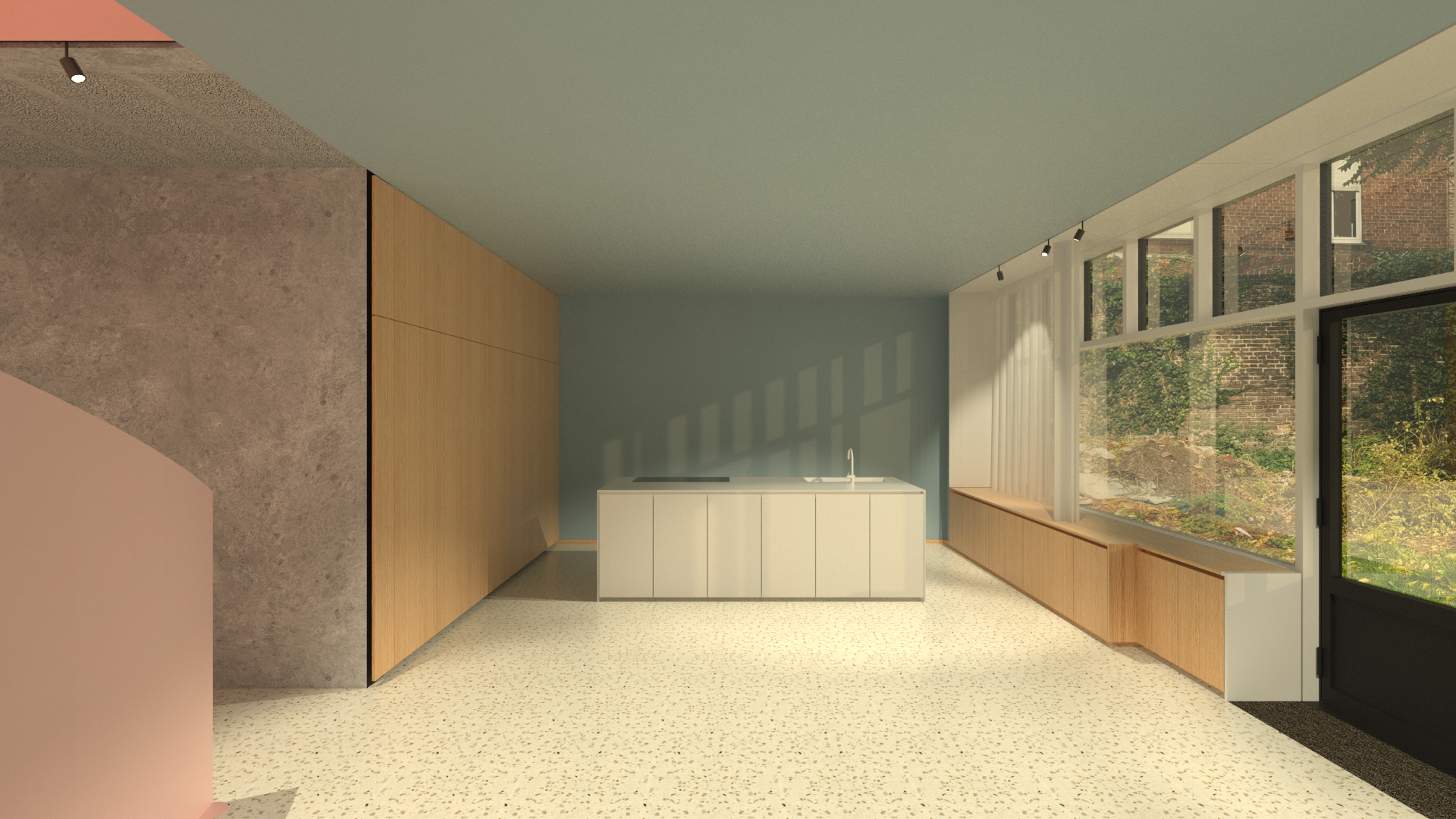 Les ouvertures, hautes et radicales, se déploient comme de grands cadres menuisés, vitrés et ouvragés, à l’image des fenêtres de salons art déco voisines. Elles surplombent la rue et ouvrent des vues vers le lointain.