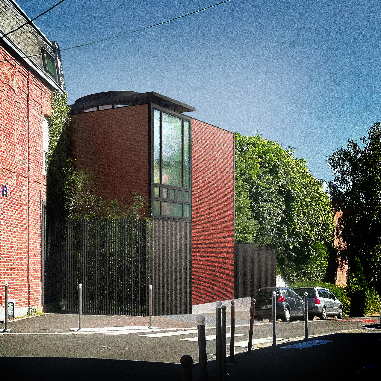 À la croisée de l’atelier de faubourg et de la maison de ville, s’installe un petit bâtiment généreux et ouvert, posé sur son promontoire et guidé par l’inflexion atypique de la trame viaire.Â