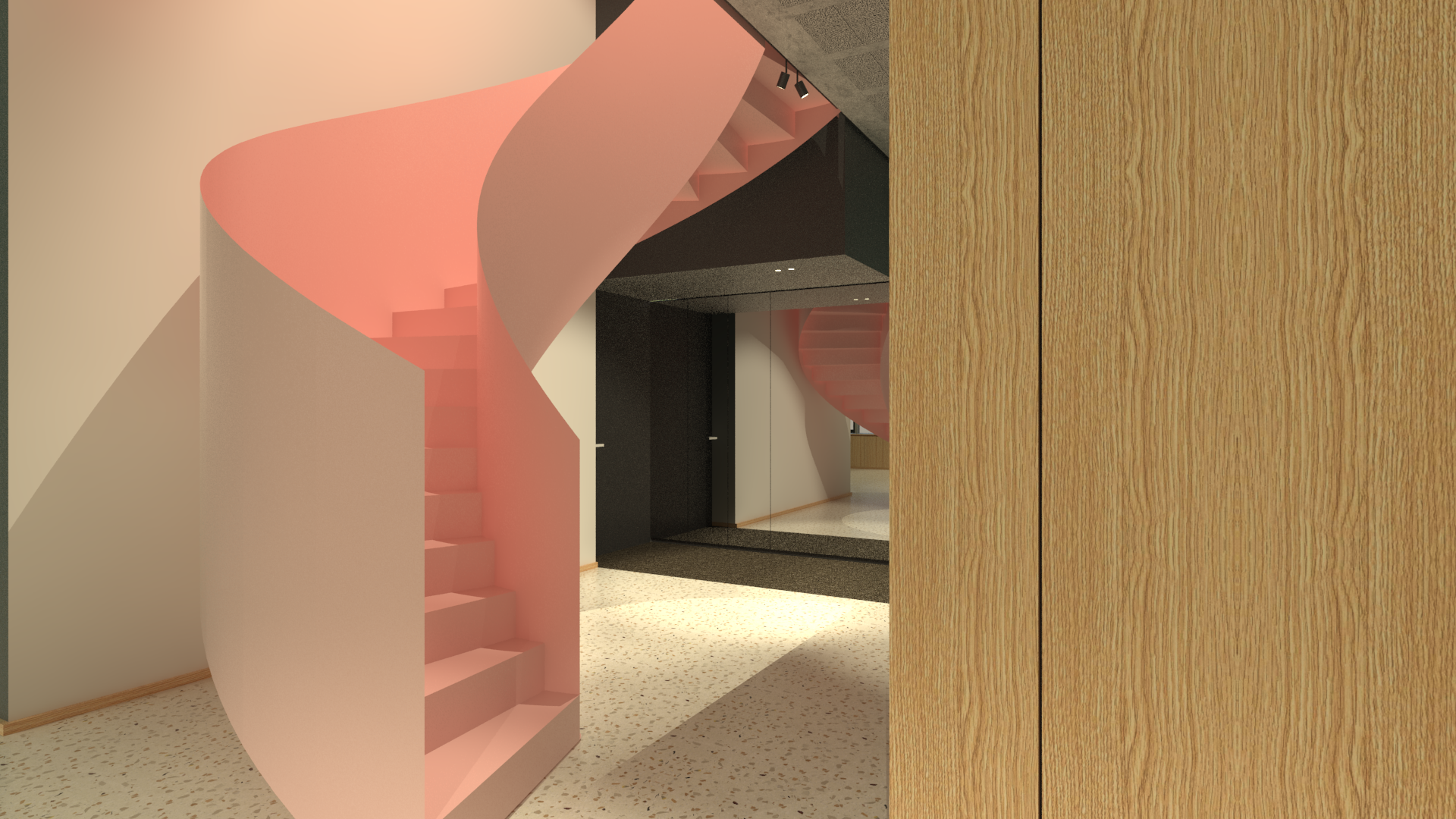 L’assemblage de plans vitrés et maçonnés joue avec les expositions, les perspectives et le relief, offrant à chaque espace son ambiance architecturale propre, tous organisés autour d’un escalier ouvert.Â